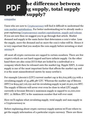 However, there are a small group of cryptos whose total supply is. Circulating supply is the third most important factor (after market cap and volume) which you must considered before investing. If there is high demand for a low supply, the price of this asset will skyrocket. Another way to describe this is that blockchain is the technology behind cryptocurrencies. Endorsements can positively affect cryptocurrencies, especially when celebrities or experts in some disciplines say something about them, which might cause a hike in prices as more people start to invest in them. Halving is a phenomenon that reduces the supply of new cryptocurrencies in circulation by 50% It's computed by multiplying the value by the circulating supply. Here, we have a circulating supply of 17.7 million btc for a maximum supply of 21 million btc. In 2017, the price of bitcoin exploded due to speculation. It's the rough amount that's currently in hands and distributing in the market. Supply and demand, just before and after the halving event, tend to affect the price of crypto. Anywhere between 60 million — 150 million is a good circulating supply for any cryptocurrency. Cryptocurrencies use blockchains in order to operate in a decentralized manner.